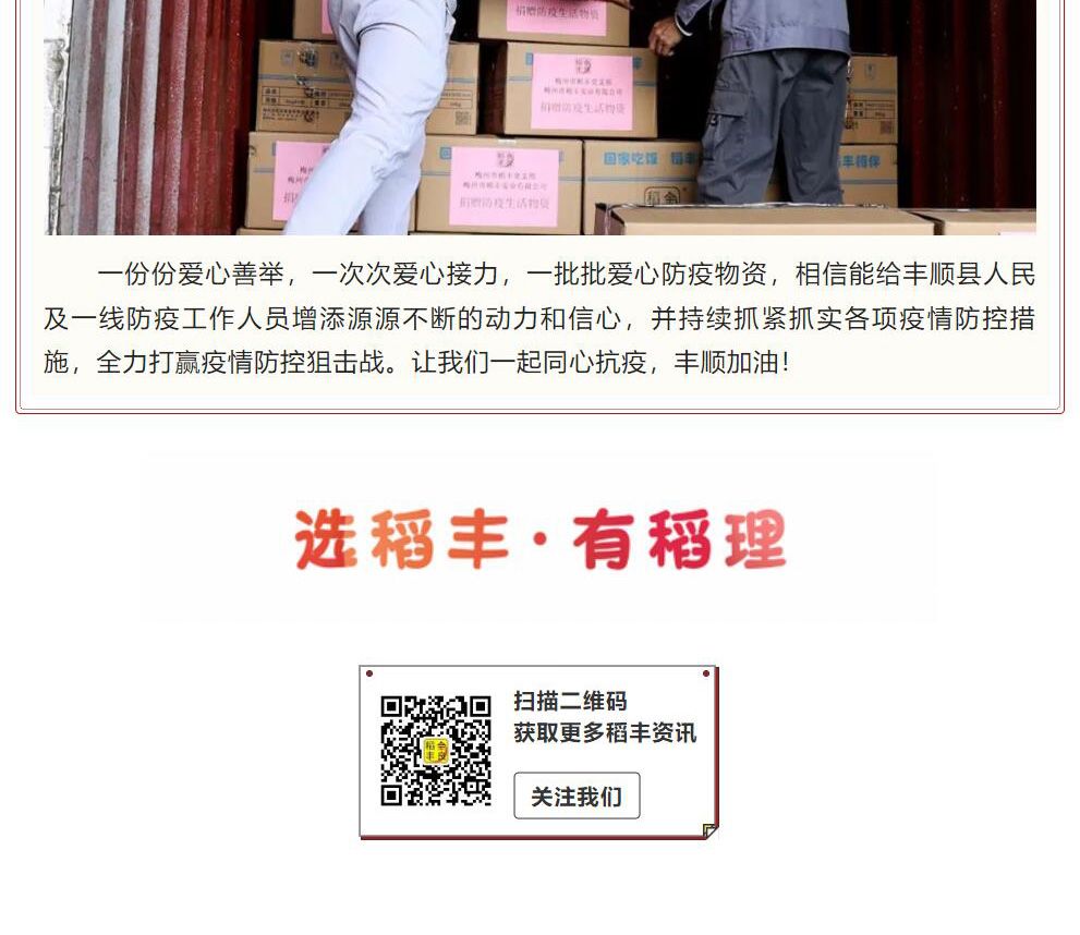 同心抗疫 豐順加油—梅州市稻豐黨支部、梅州市稻豐實(shí)業(yè)有限公司向豐順縣捐贈(zèng)稻豐米等物資助力豐順抗擊疫情