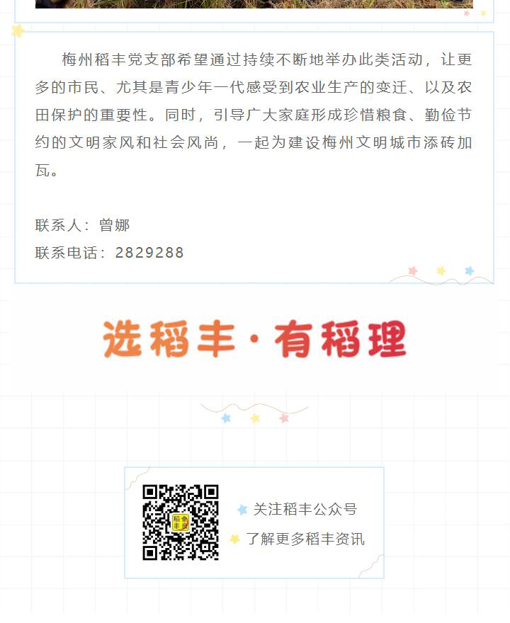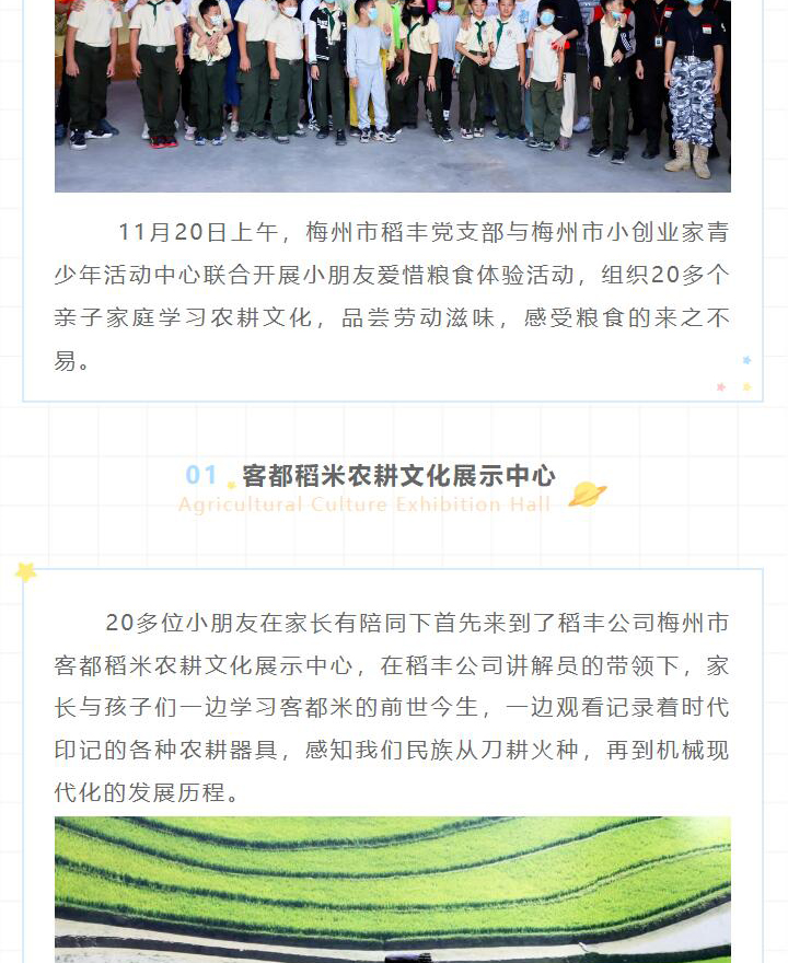 梅州市稻豐黨支部開展小朋友愛惜糧食體驗活動