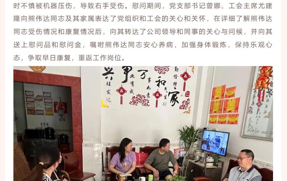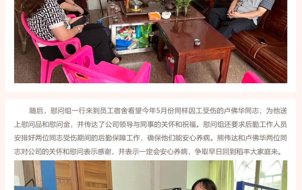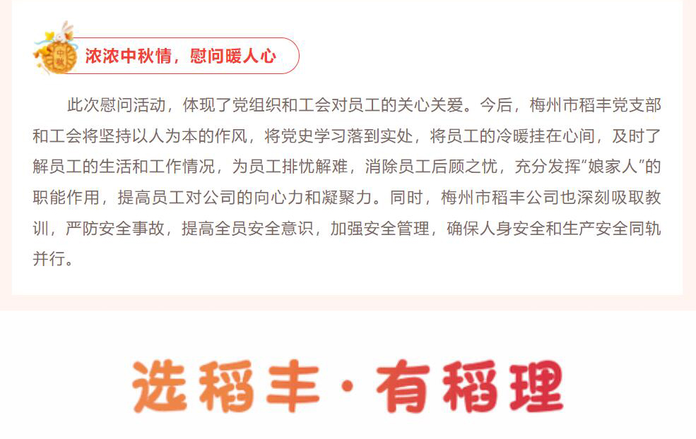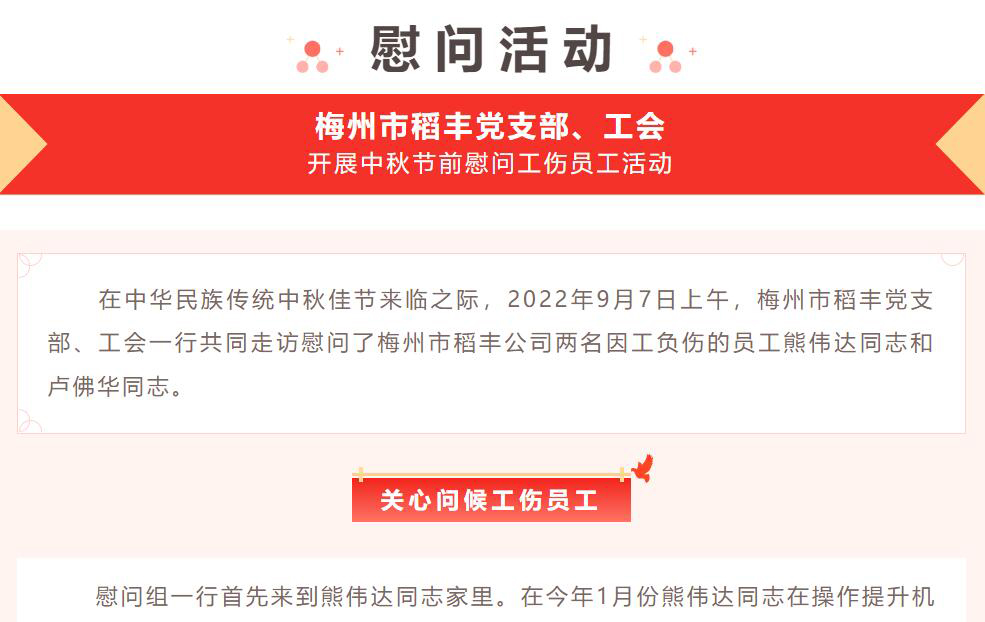 梅州市稻豐黨支部、工會(huì)開(kāi)展中秋節(jié)前慰問(wèn)工傷員工活動(dòng)